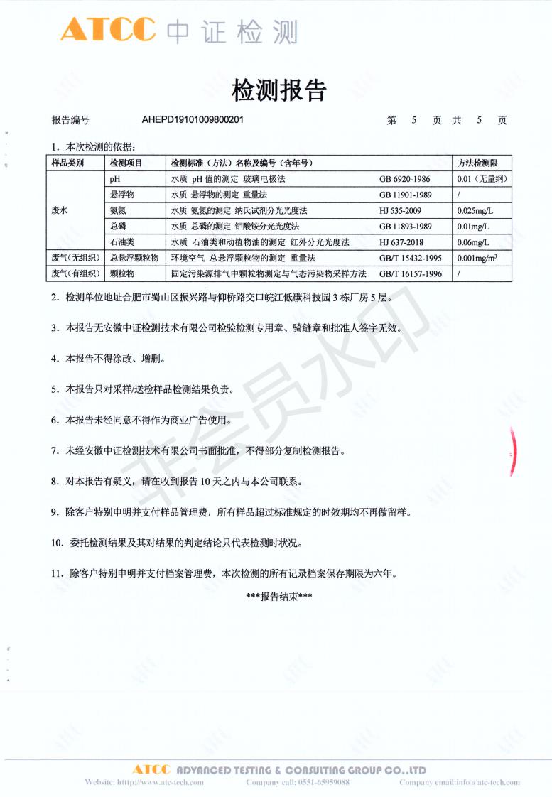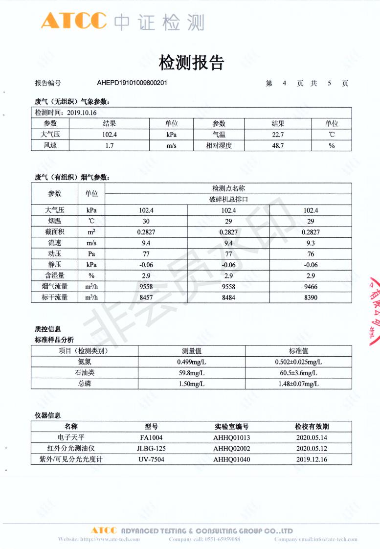 2019年10月份检测报告