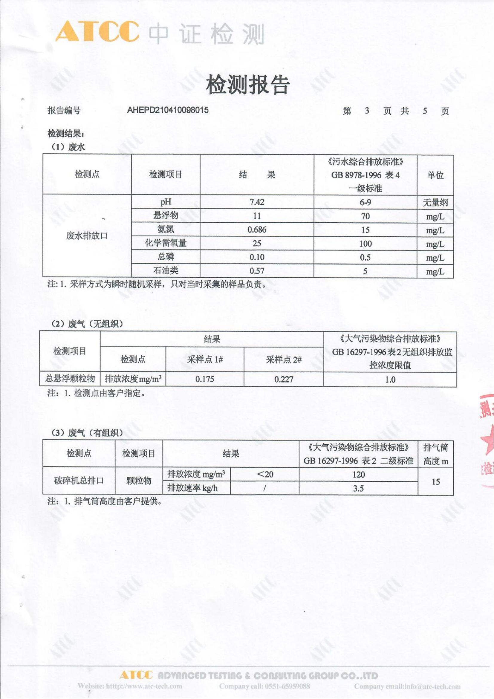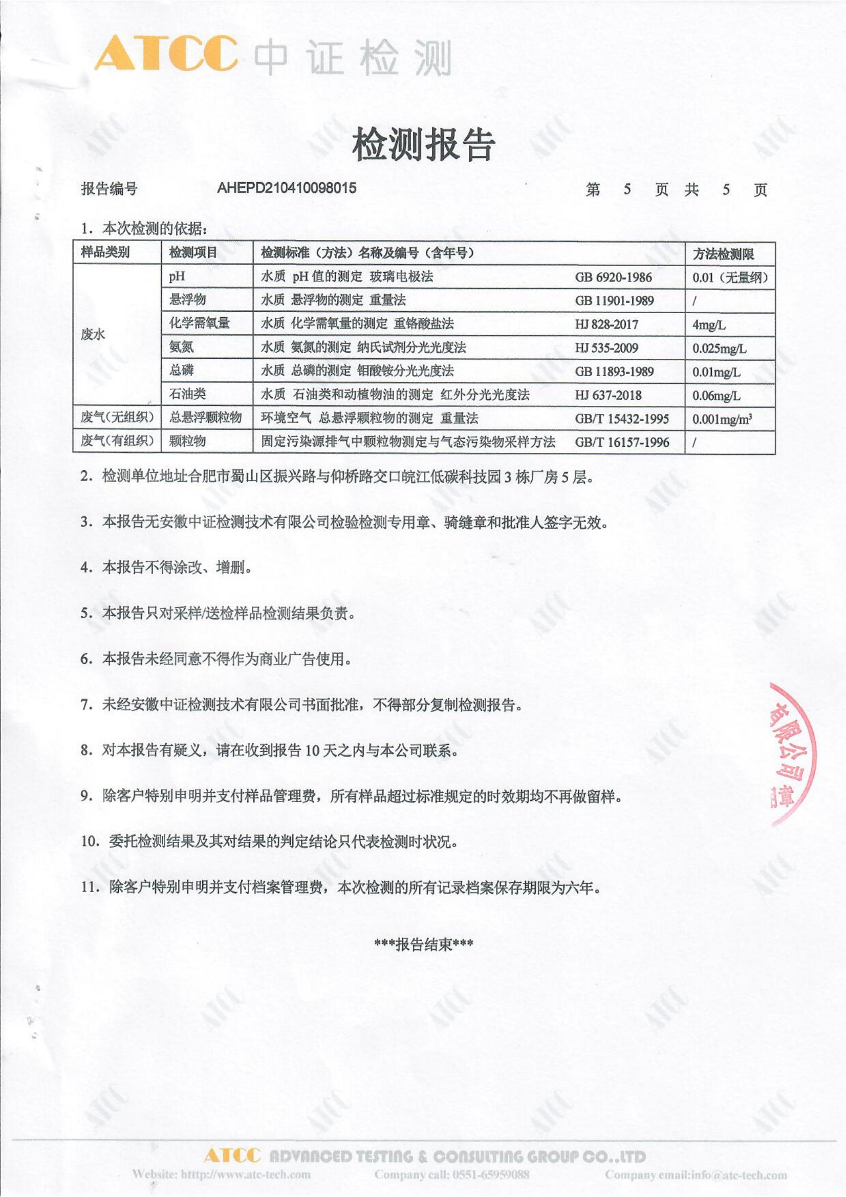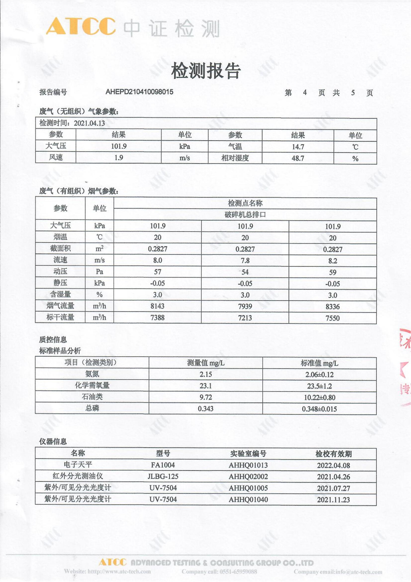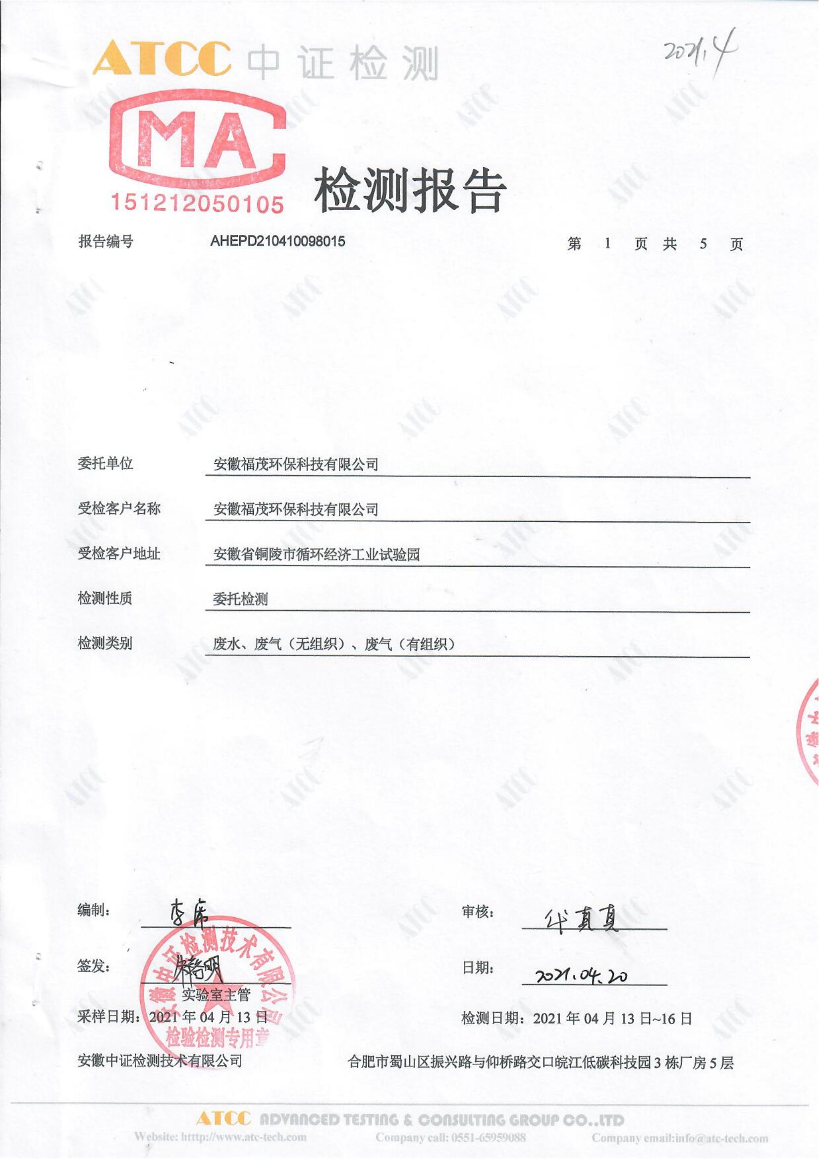2021年4月份检测报告