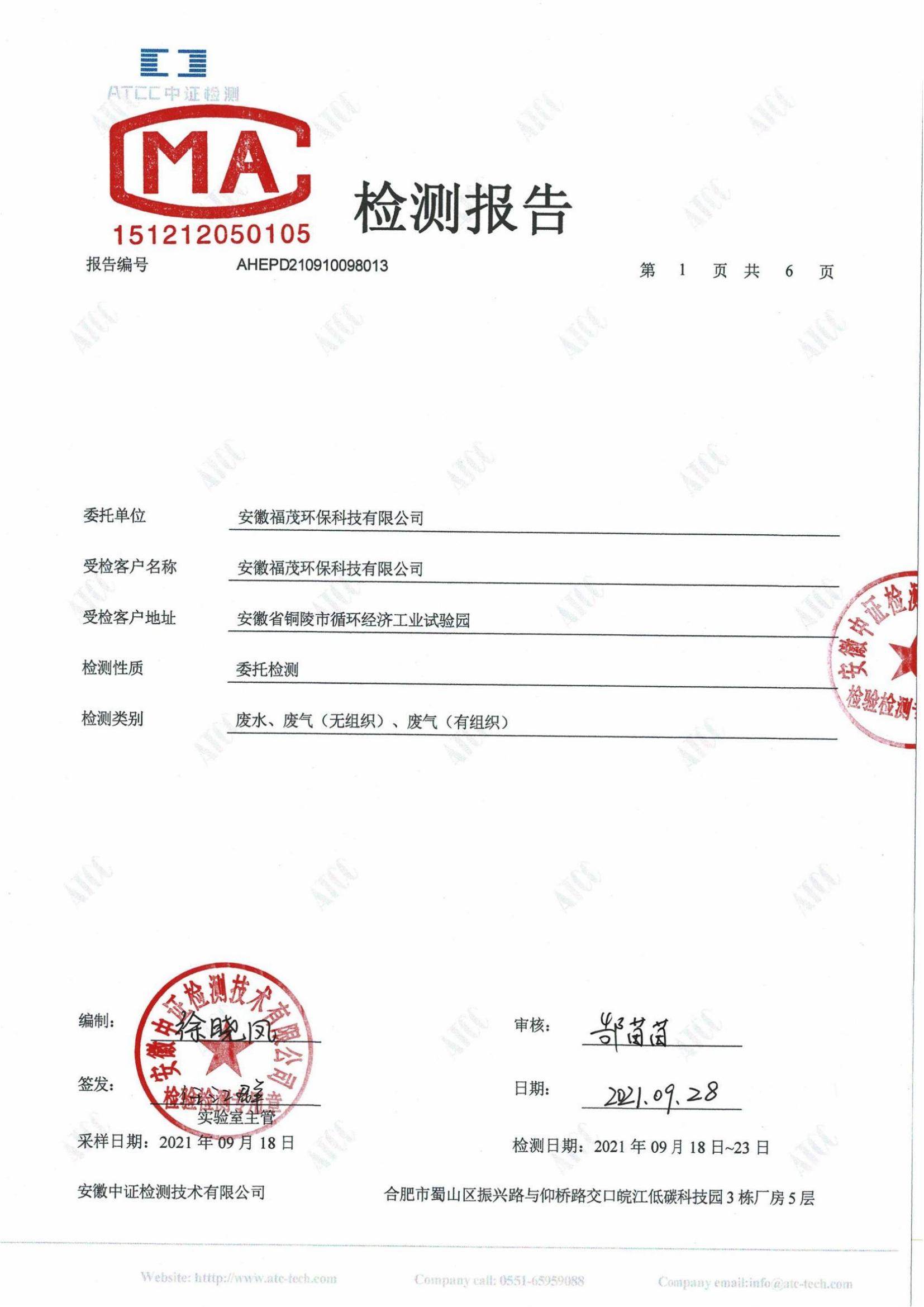 2021年9月份检测报告