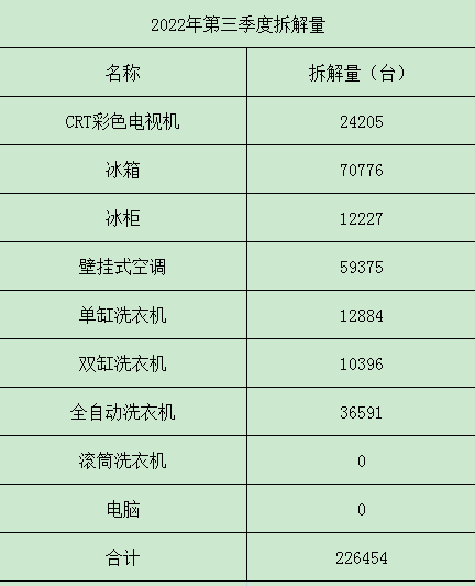 2022年第三季度拆解量